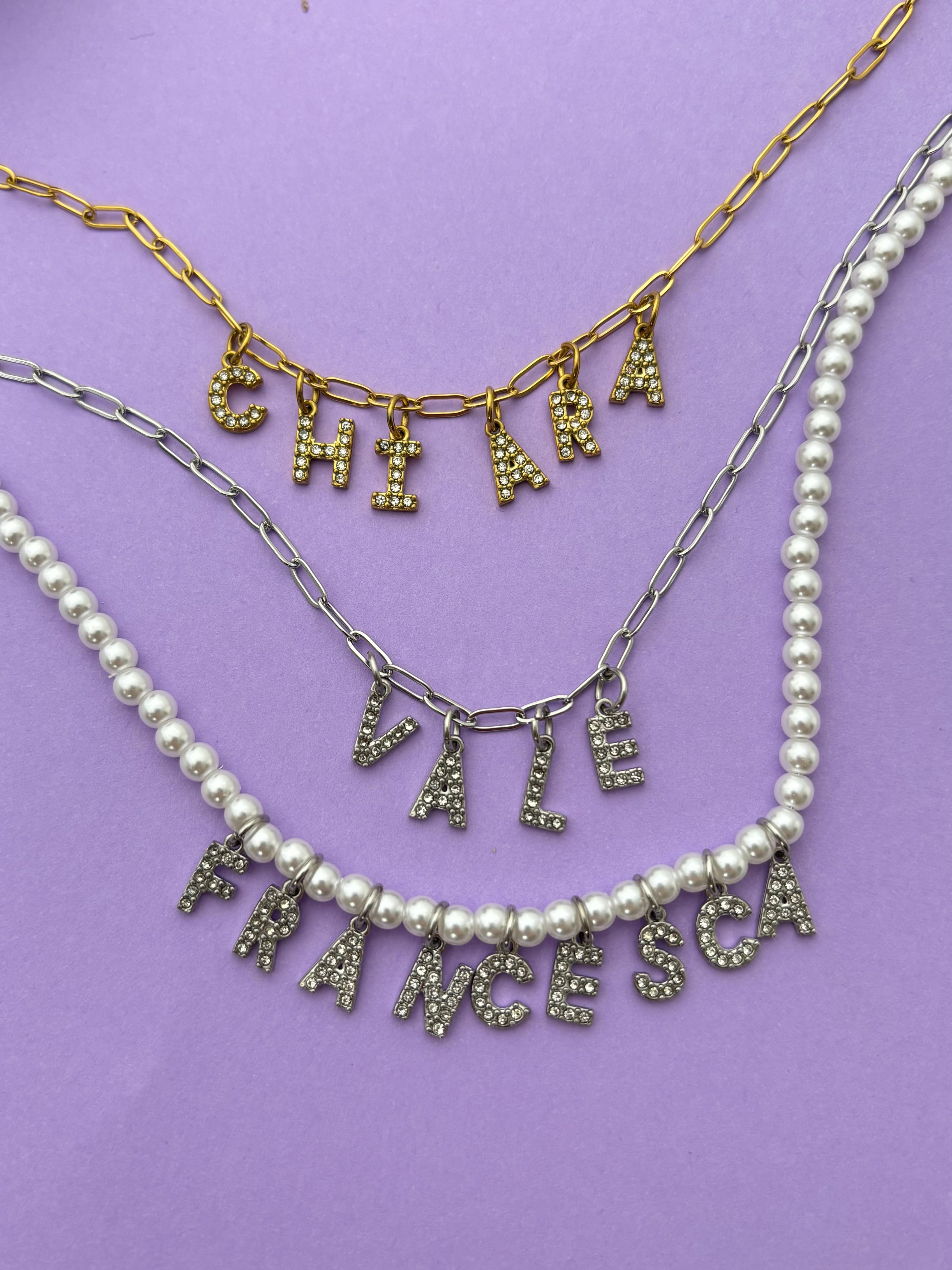 Rendi unico ogni tuo look con la nostra collana con nome componibile in acciaio inossidabile. Personalizzabile lettera per lettera, ti permette di creare il tuo nome, quello di una persona speciale o una parola che ti rappresenta davvero.