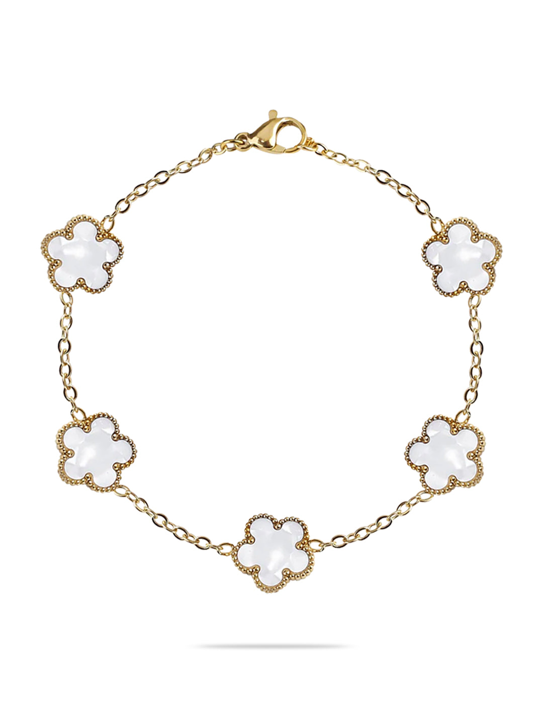 Bracciale con 5 fiori modello Van Cleef in acciaio inossidabile placcato in Oro.