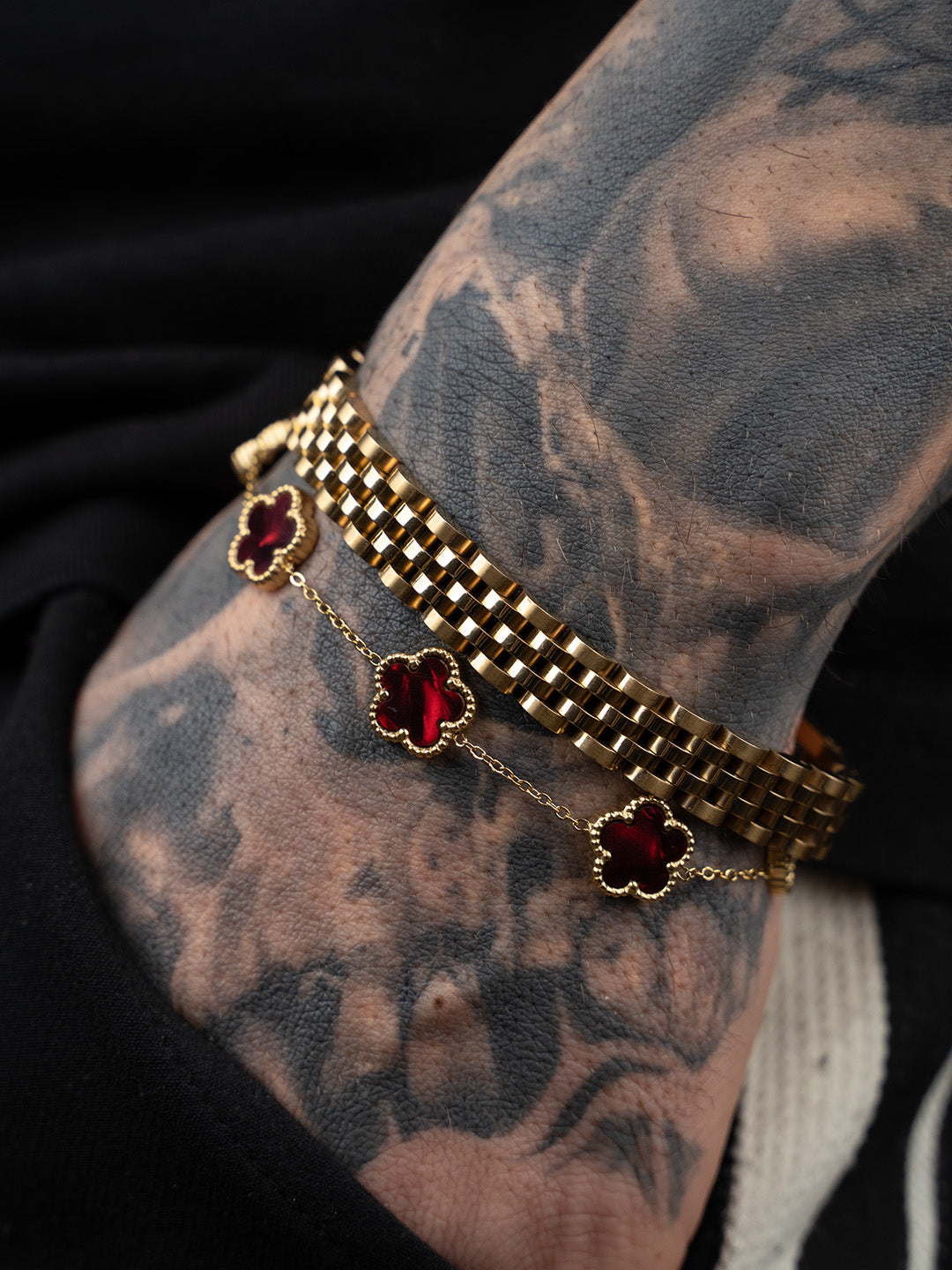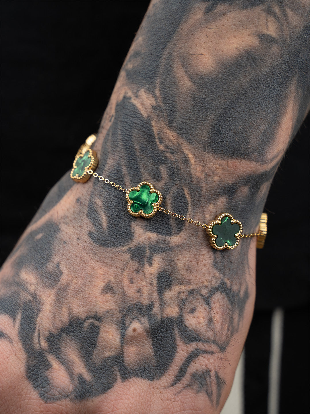 Esplora la tua audacia con il Bracciale Luxury Madreperla stile Van Cleef! Con 4 magnifici fiori colorati in madreperla, aggiungerà una nota di avventura al tuo outfit. Sii unica e coraggiosa con il nostro bracciale di lusso