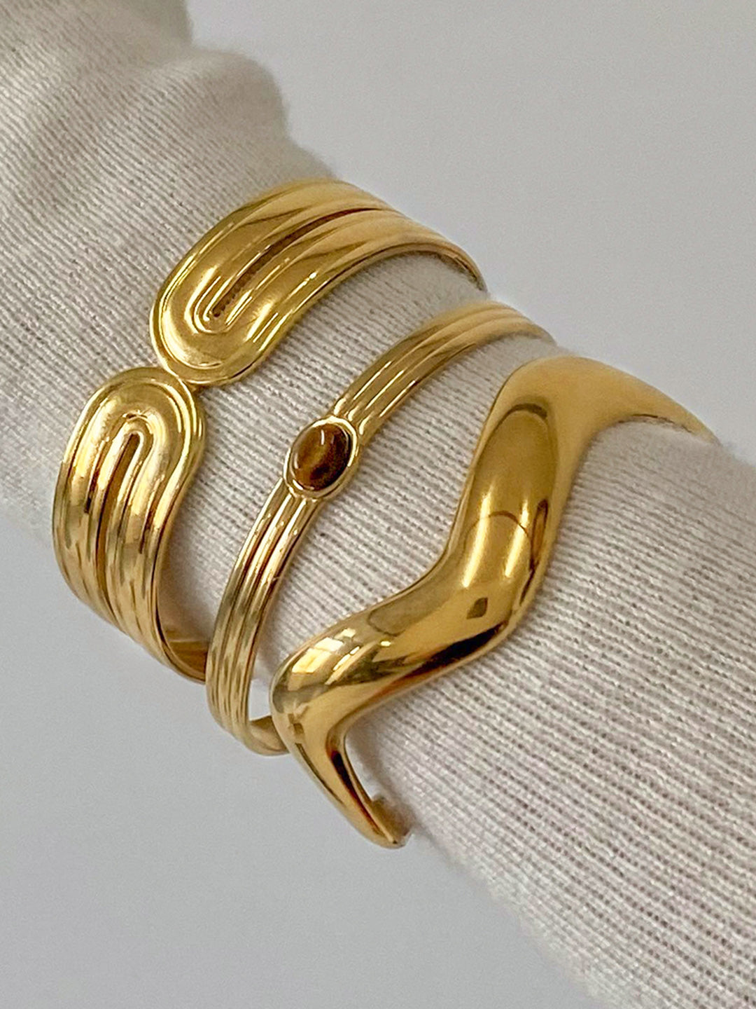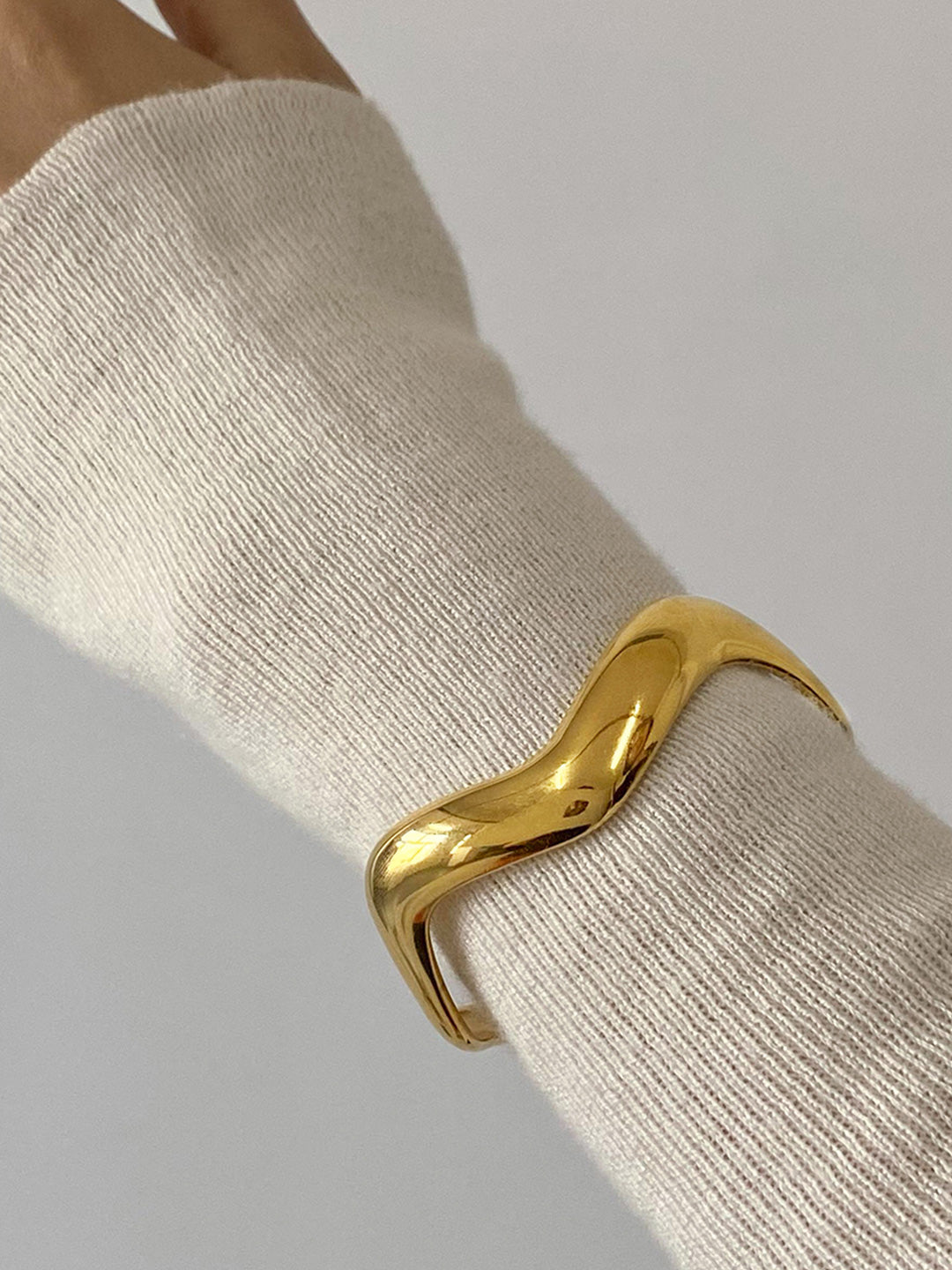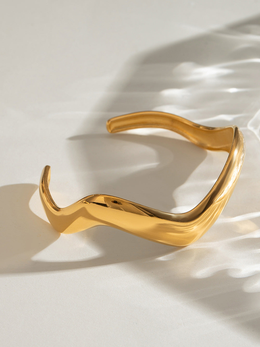 Bracciale Rigido Dorato Ondulato - Golden Wave
