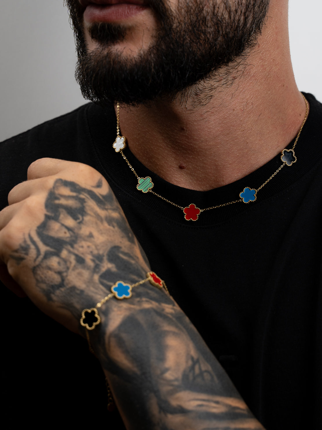 La nostra Collana con Fiori Rossi modello Van Cleef è perfetta per aggiungere un tocco elegante ai tuoi outfit. Con la sua catena in acciaio e i charm a forma di fiore in pietra onice, questa collana è un'esplosione di stile e personalità. La resistenza all'acqua la rende adatta a qualsiasi occasione.