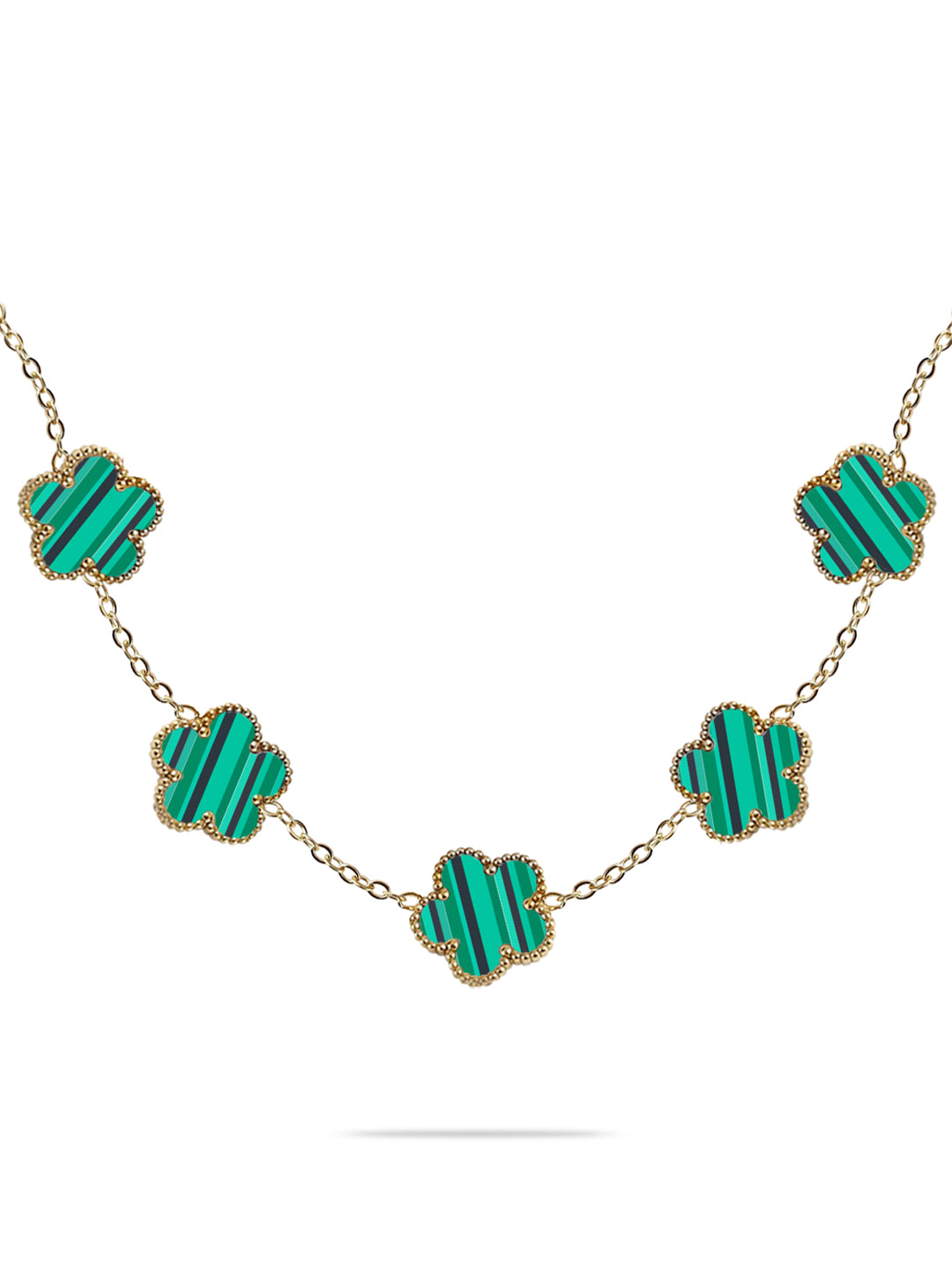 La nostra Collana con Fiori Rossi modello Van Cleef è perfetta per aggiungere un tocco elegante ai tuoi outfit. Con la sua catena in acciaio e i charm a forma di fiore in pietra onice, questa collana è un'esplosione di stile e personalità. La resistenza all'acqua la rende adatta a qualsiasi occasione.
