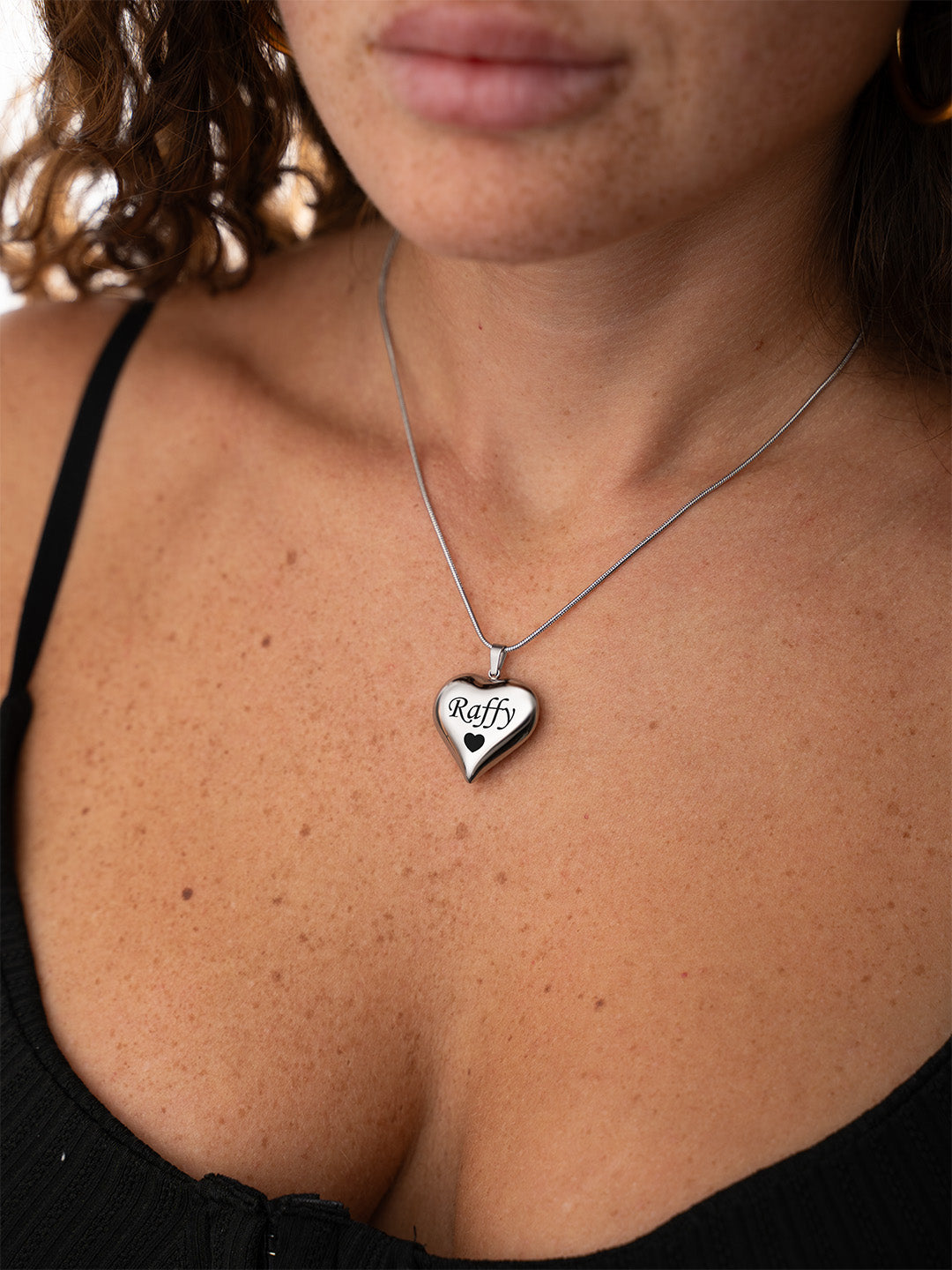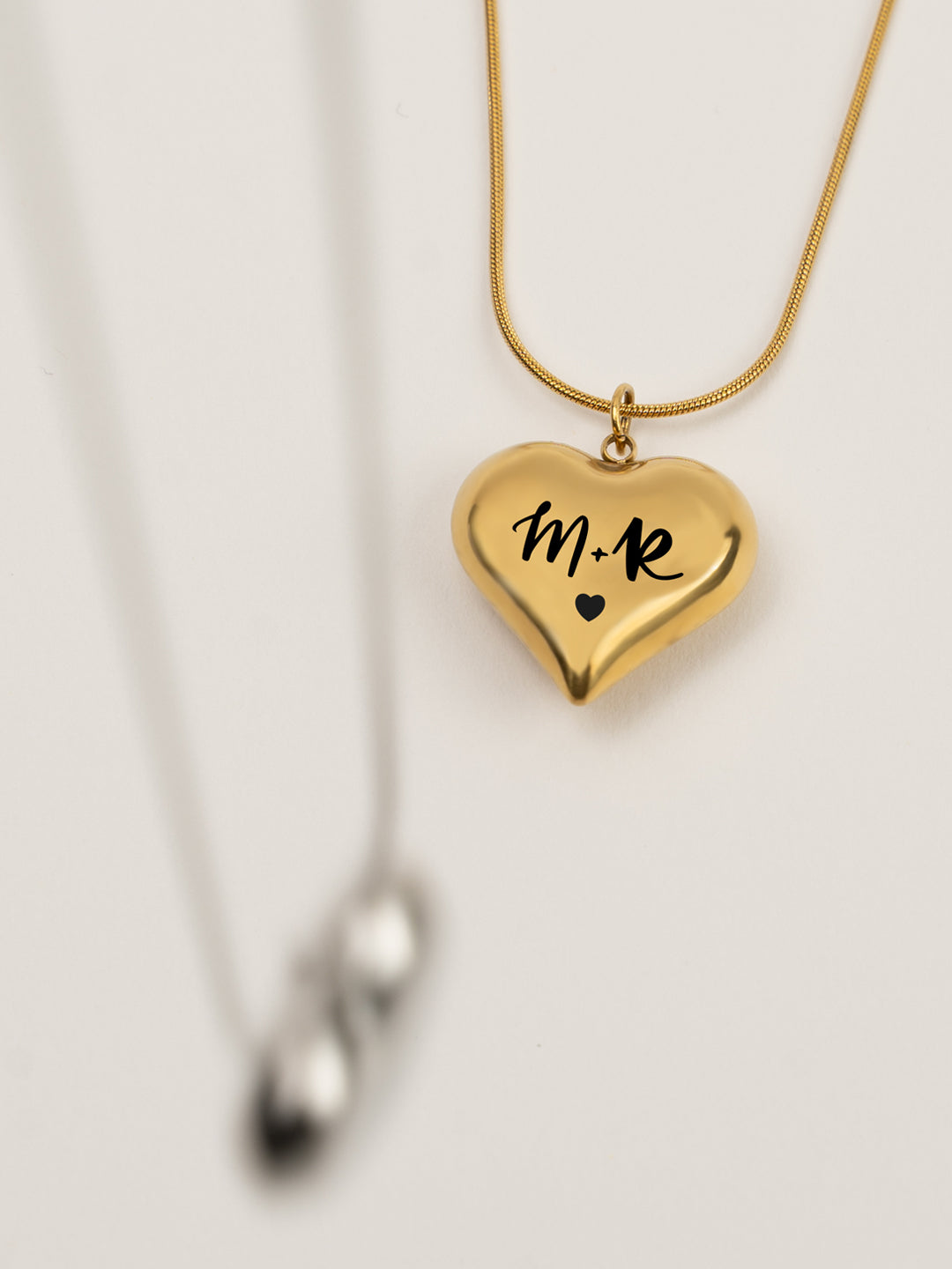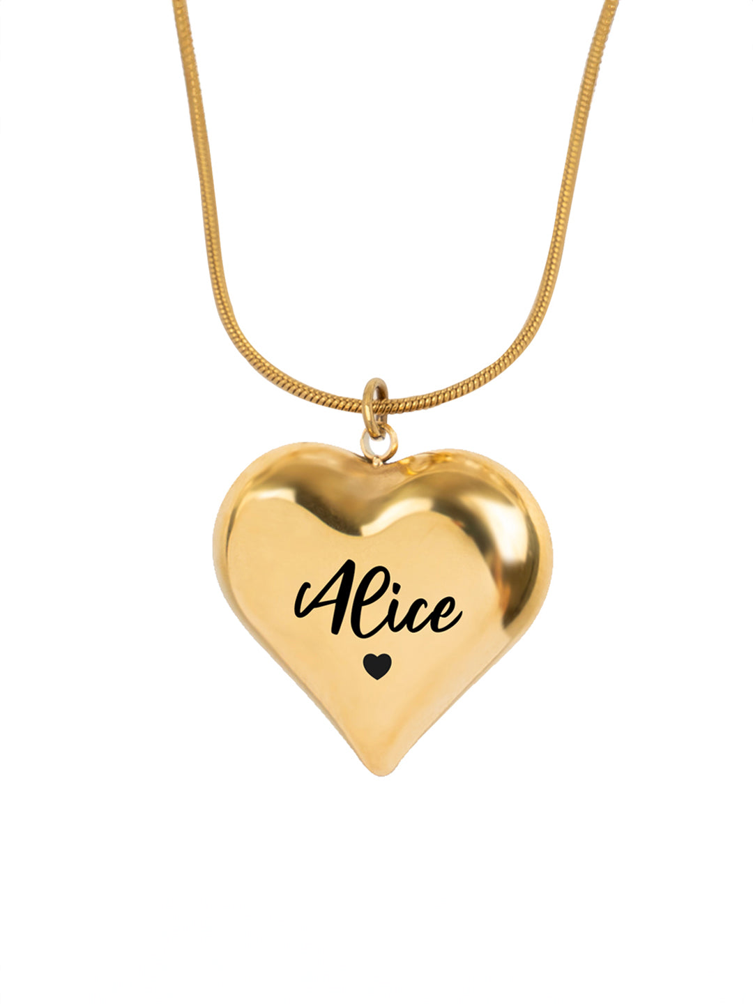 Questa collana dal design minimalista ha un ciondolo a forma di cuore bombato realizzato in acciaio inossidabile. Il ciondolo è personalizzabile con un'incisione significativa, rendendo questa collana un regalo davvero unico e speciale.