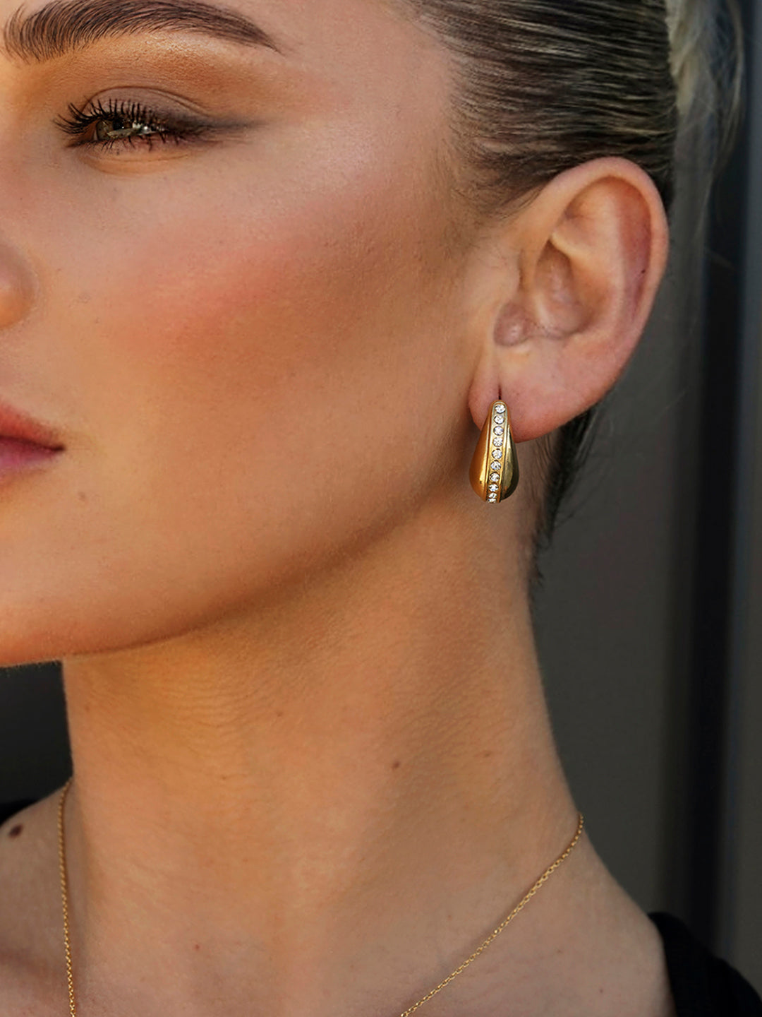 Orecchini a goccia eleganti decorati con cristalli brillanti, perfetti per aggiungere un tocco di luce al tuo look. Ideali per un’occasione speciale o per dare un tocco sofisticato al tuo stile quotidiano.