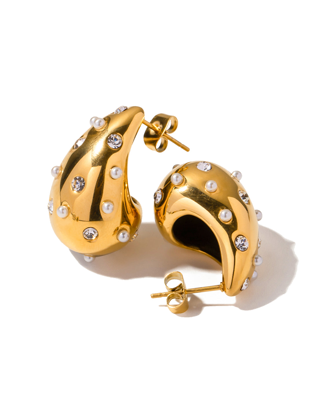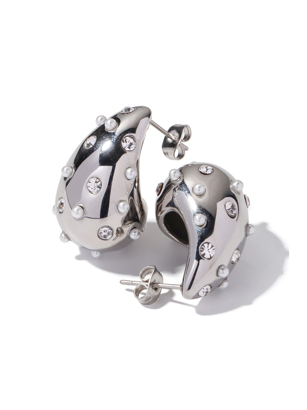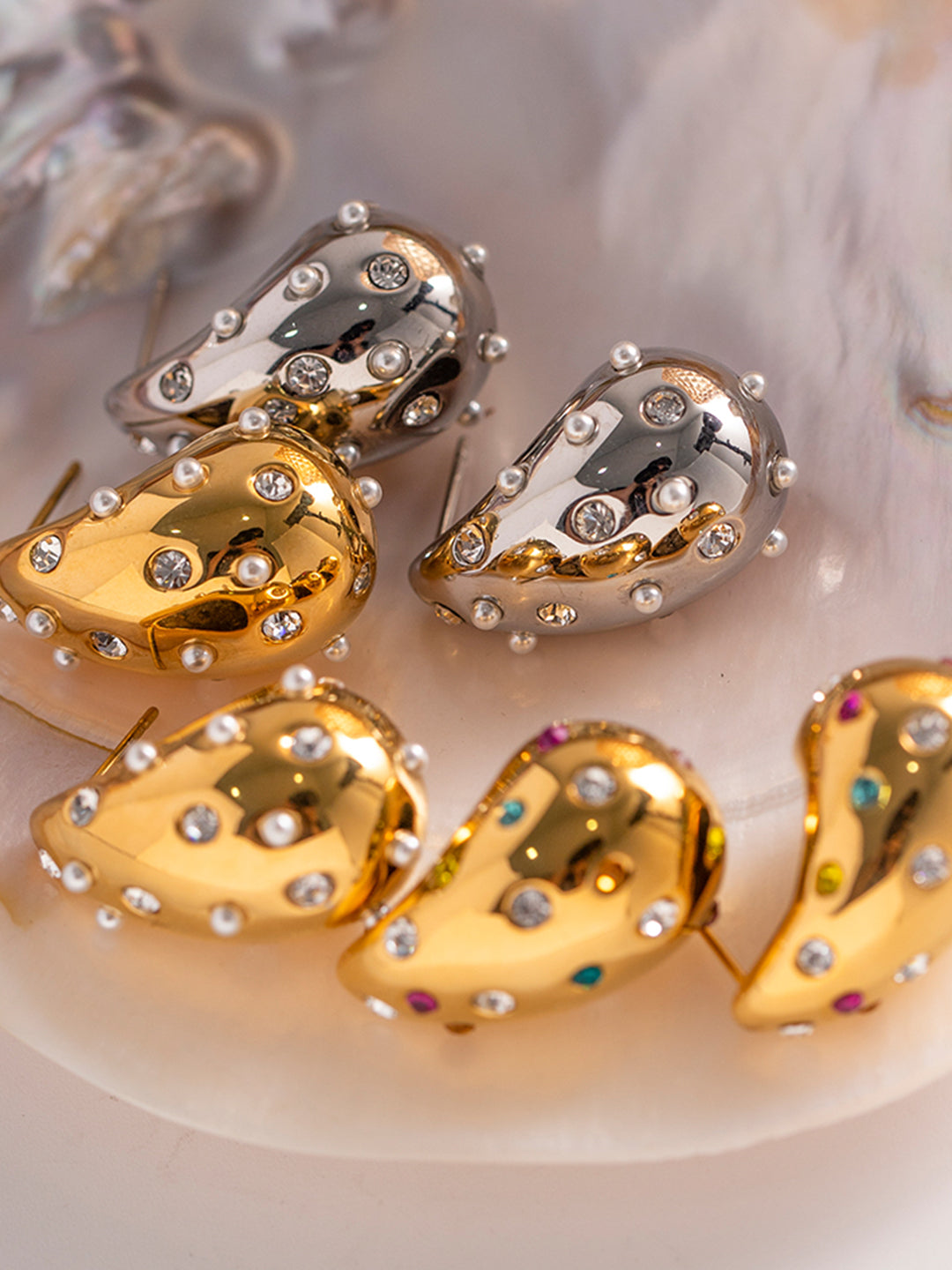 Questi orecchini a goccia argentati e dorati, impreziositi da perle e cristalli, aggiungono un tocco di sofisticatezza al tuo stile.